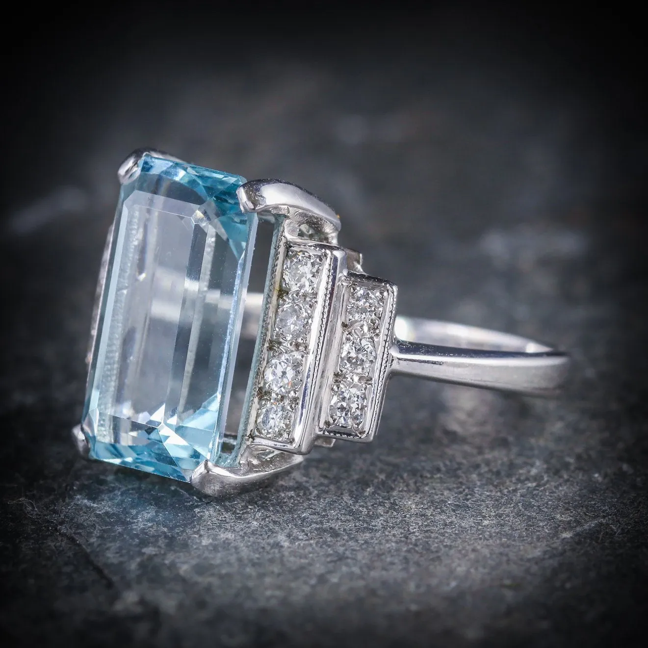 The Aquamarine and Diamonds are all Circa 1900 set into a newer gallery which is Art Deco style.