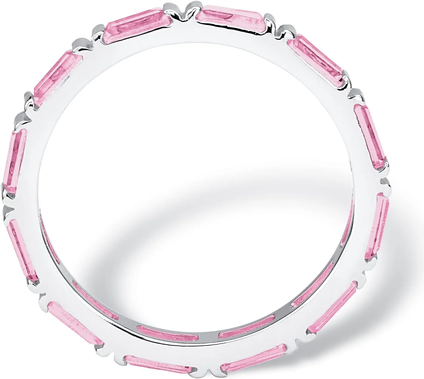The eternity band is a classic jewelry essential that outlasts the fads and trends of the moment. This contemporary birthstone eternity band contains bezel-set birthstones all around. Wear it in shining sterling silver. Sizes 5-10. Birthstones are simulated gemstones.