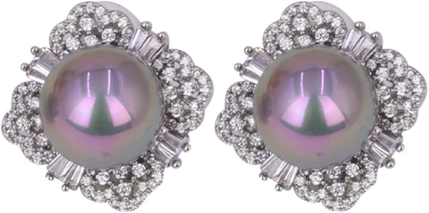 Pearl Earrings for Women Stud Statement Pearl Earring Jewelry for Girls, Silver Plated Prom Jewelry Cubic Zirconia Pearl Earrings for Gifts