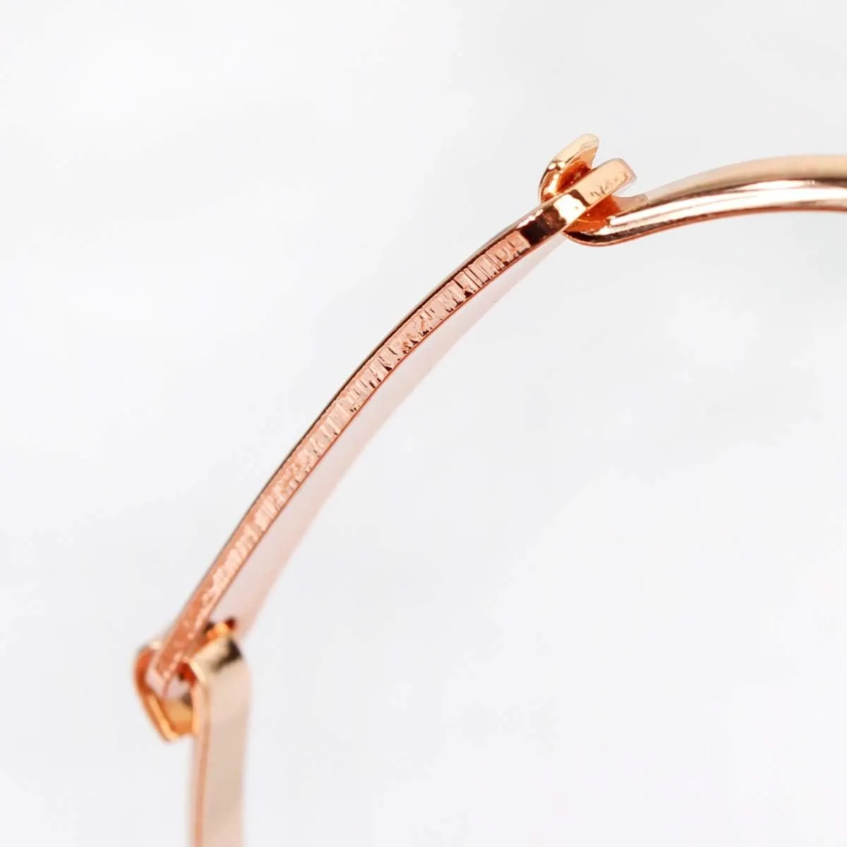 - PRODUCT DETAILS - This chic, dainty bracelet is sure to go perfect with any of your everyday outfits. Featuring an engraved inspirational message plate bar and an easy open/close toggle inspire yourself or your loved ones with this lovely bangle. MATERIAL: Base Metal. MEASUREMENTS: 2.5" Diameter. CARE INSTRUCTIONS: Limit exposure to water, perfume or body cream to extend the life of your jewelry.