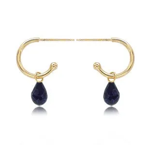 14K Yellow Gold Sapphire Briolette Dangle Hoop Earrings