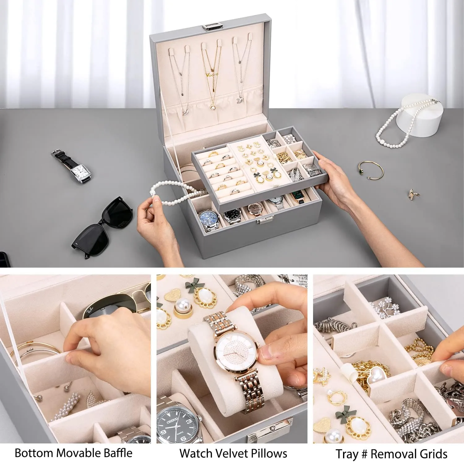 - Great Ideal Gift: Whether you are treating yourself or giving a gift to your girlfriend, wife, mother or other lovers for Valentine's Day, Birthday, Mothers' day, Christmas, Anniversary Day, or Wedding. Our decent and versatile jewelry watch showcase is a perfect gift choice. The cute modern jewelry storage box will be shipped with voova designed gift packaging box, gorgeous and big capacity for jewelry collection.